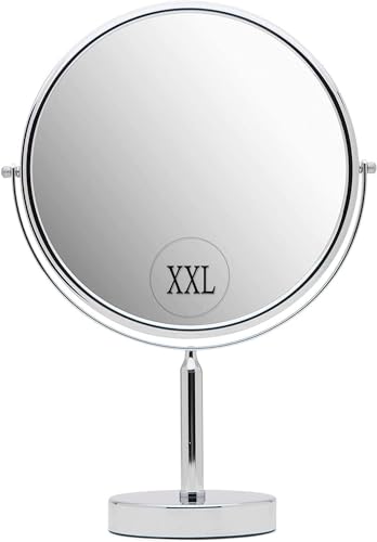 Specification: XXLarge Oversized 3X Weak Magnifying Mirror with Stand for Desk, Table, Retail Store Countertop, and Makeup Vanity – Double Sided 3X/1X Magnification – 17″ Tall and 11″ Wide