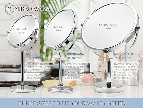 #1 – GINORMOUSLY HUMONGOUS – With its 11” diameter, this mirror has double the reflection area of 8” mirrors and almost triple that of 7” mirrors! This 17″ tall tabletop mirror is absolutely M-A-S-S-I-V-E.