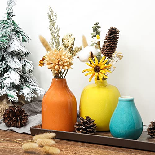 Ceramic Vases for Decor Set of 3, Colorful Decorative Vases for Farmhouse Fireplace, Modern Small Centerpieces Floral Decoration for Home Office Living Room Shelf Table, Rustic Style