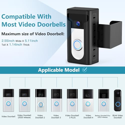 【Compatible Doorbells】The doorbell mount is compatible with Video Doorbell /2 /3 /3 Plus /4 /(2020 Release)/ Battery Doorbell Plus. The size of the doorbell that may be placed inside is no more than 2.55inches Wide x 5.11inches High x 1.14inches Depth. (Doorbell is Not Included in Package!)