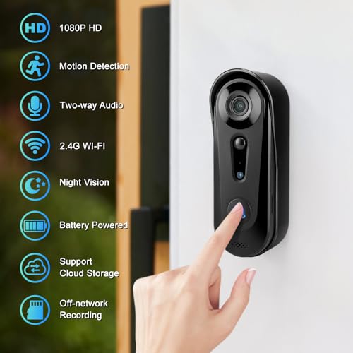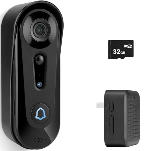 Doorbell Camera Wireless – Wireless Video Doorbell with Chime,HD Video Door Bell Camera for Home,2-Way Audio,2.4G WiFi,32GB SD Card No Subscription