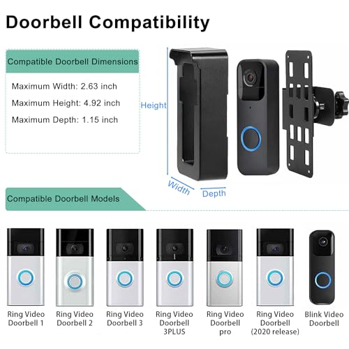 【Doorbell Compatibility】Fits Ring Video Doorbell (1/2/3/3 Plus/4/2020 Release), Blink Doorbell Camera, and other doorbells within 2.63″ W, 4.92″ H, and 1.15″ D. (Doorbell not included).