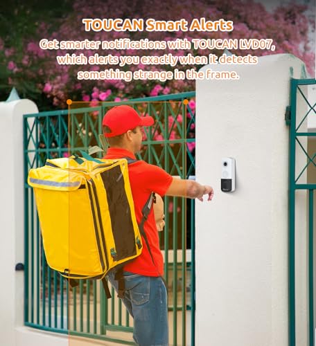 Specification: TOUCAN Doorbell Camera, Video Doorbell with Chime, 2-Way Talk, 2.4Ghz WiFi, Night Vision, PIR Motion Detection, Works with Alexa and Google Assistant,Indoor Outdoor Surveillance