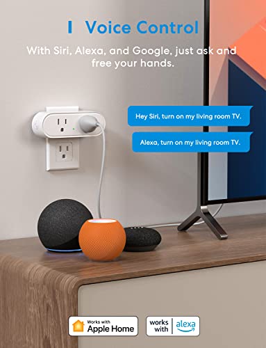 meross WiFi Dual Smart Plug, Smart Outlet Supports Apple HomeKit, Siri, Alexa & SmartThings, Voice & Remote Control, Timer, Schedule, 2.4GHz WiFi, 10A, No Hub Required, 2 Pack