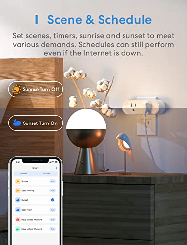 Compact 2-in-1 Design: Smart plug features two outlets, is more efficient and space-saving than single-socket. Concurrently controlled outlets with one manual ON/OFF button, and independently controll outlets with Meross app. It supports home appliances up to 10A.