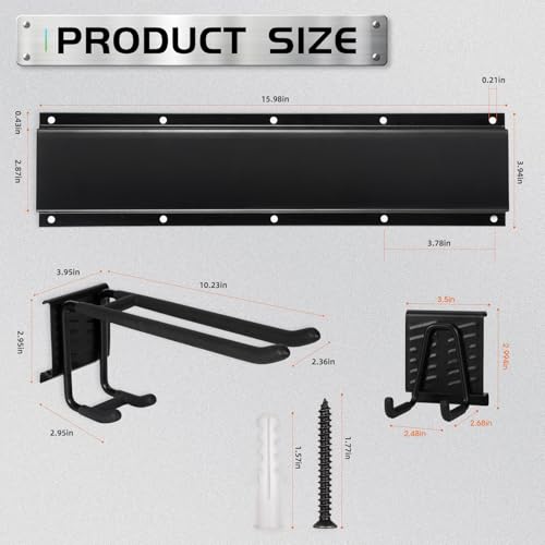 【EASY INSTALLATION】 Hooks of yard tool organizer for garage will also be disassembled time and again, no wish to assemble, just mark where you wish to have to mount it, keep it level, mount the garage organizer wall mount to the wall with anchors and screws and use it.