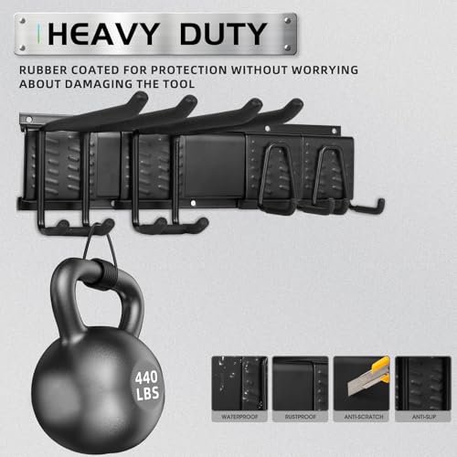 【HEAVY DUTY STORAGE】 Garage organizer is turdy and durable with a maximum load capacity of 440lbs, it can hang folding ladders, power tools, shovels and other various tools and equipment, ideal garage tool organizer for garden and garage tools.