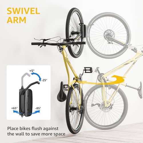 Specification: monTEK Swivel Bike Wall Mount, Bike Hangers for Garage, Wall Mount Bike Rack, Space Saving Wall Bike Rack, Vertical Bike Rack Holds up to 66lbs, Black, 4 Pack