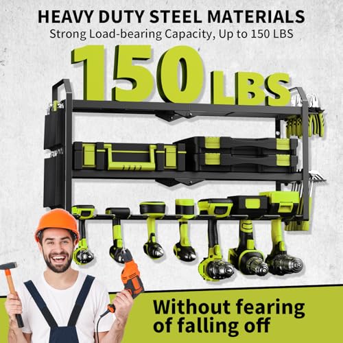 150-POUND BEARING WEIGHT: Tested by professional institutions, the power tool organizer gives ultra-strong reliability with up to 150 lbs of bearing weight after proper installation. Included expansion bolts for greater load bearing, without any shelf breaking or annoying slipping