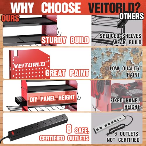Specification: Veitorld Power Tool Organizer with Charging Station, 4 Drill Holders, Heavy Duty Modular Wall Mount Rack for Garage & Shed Organization, Tool Storage Organizer, Gifts for Men Dad Husband Christmas