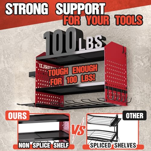 Efficient Charging Station: Keep your tools in a position to go with our integrated power tool organizer wall mount, featuring 8 AC outlets with overload protection. Charge more than one devices concurrently, boosting your work efficiency