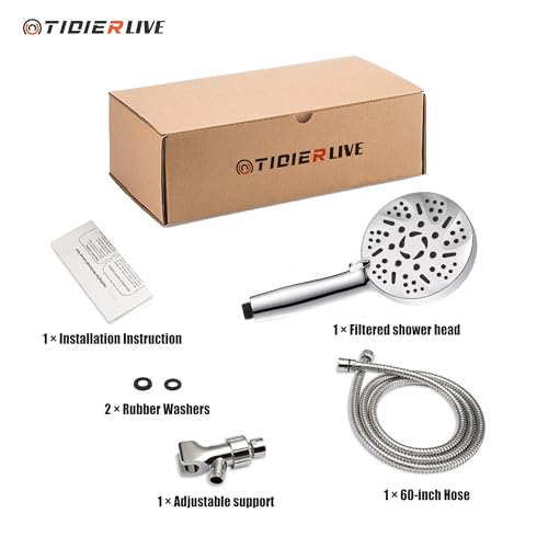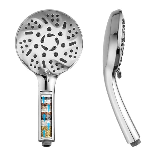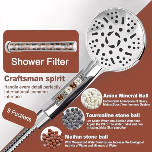 Specification: 9 Modes High Pressure Handheld Shower Head with Hard Water Softening Filter to Remove Chlorine and Other Compounds, Reduces Dry Itchy Skin, Includes Hoses