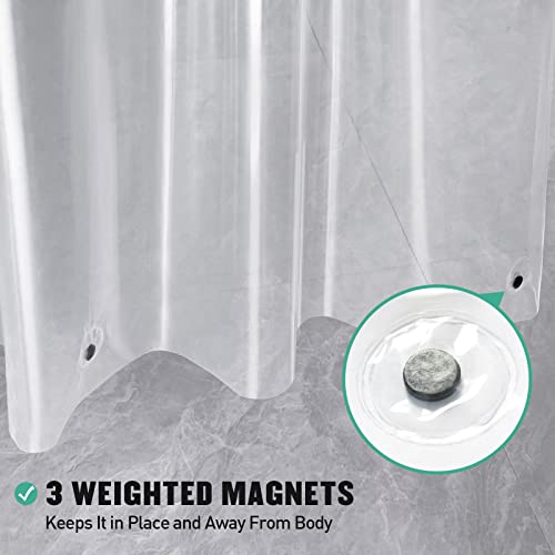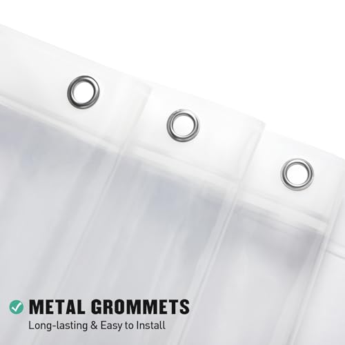 LONG-LASTING & SOFT – This lightweight shower curtain liner is the very best addition to any bathroom. It features a reinforced header and rustproof metal grommet eyelets that provide a strong and protected fit. The fabric is soft & waterproof enough, ensuring a clean and fresh shower experience.