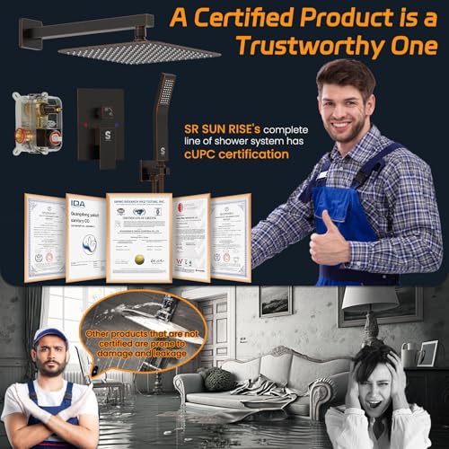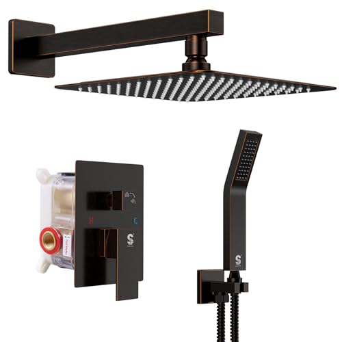 Specification: SR SUN RISE Oil Rubbed Bronze Shower System 12 Inches Brass Bathroom Luxury Rain Mixer Shower Combo Set Wall Mounted Rainfall Shower Head System Shower Faucet Rough-in Valve Body and Trim Included