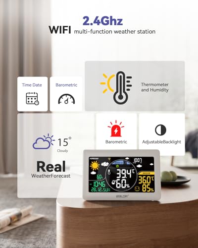 Specification: BALDR WiFi Weather Station with 3 Wireless Sensors, APP Smart Control Thermometer with Real Time Internet Forecast and Large Color VA Display(White)