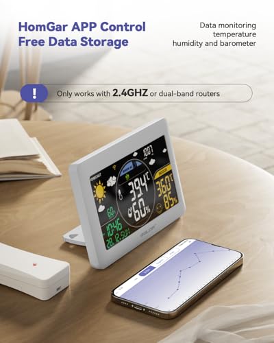 [Smart WiFi Weather Station with 3 Sensors]With the convenient operation of the HomGar App, you can monitor the temperature and humidity at home anytime and anywhere! Please note that this device is only compatible with wireless routers in the 2.4GHz band. This weather monitor is equipped with three remote sensors for full environmental monitoring.