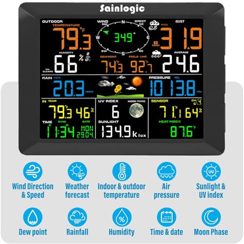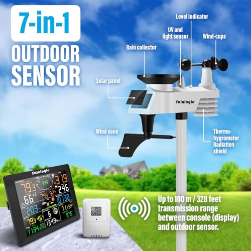 Specification: Sainlogic 8.3 Inch Color Display WLAN Weather Stations Wireless Indoor Outdoor with 7-in-1 Rain Gauge and Wind Speed Sensor, Internet Wireless Weather Station Remote Monitoring System
