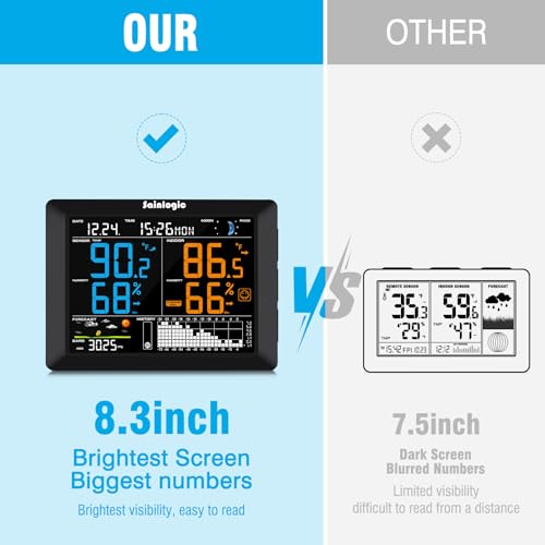 Specification: Sainlogic Wireless Weather Station with 8.3″ Large Easy to Read Screen & Indoor Outdoor Sensor for Temperature, Humidity, Weather Forecast & Alarm(No WiFi)