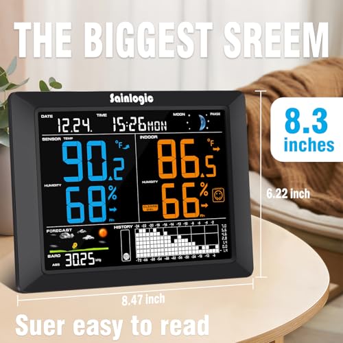 Sainlogic Wireless Weather Station with 8.3″ Large Easy to Read Screen & Indoor Outdoor Sensor for Temperature, Humidity, Weather Forecast & Alarm(No WiFi)