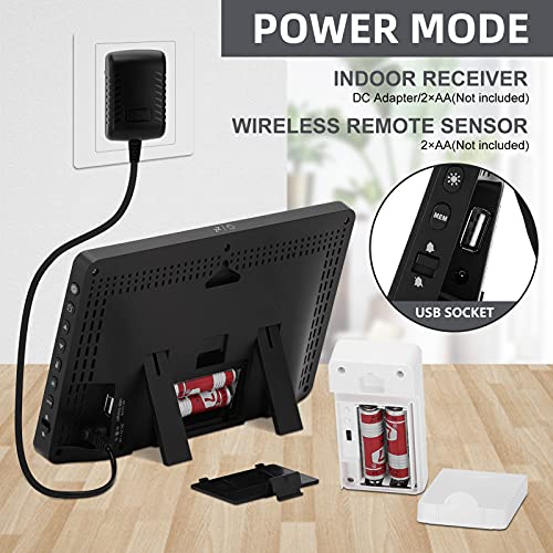 Two Power Supply Modes with Adjustable Backlight: This weather station may also be powered in two ways. In the power supply mode, the screen has 4 adjustable brightness options. In battery-powered mode, the screen will light up after you touch the top and turn off automatically after 15 seconds to save power