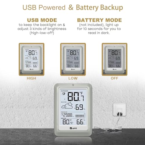 SPECIAL FEATURES – Stop worrying about the climate! With our wireless hygrometer thermometer gauge, it is possible for you to to know in real time the weather forecast, in addition to the indoor and outdoor temperature and humidity. You’ll also see on the display of Barometric history chart, Barometer reading, Barometric history data.